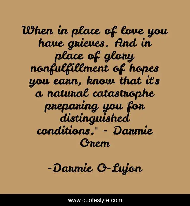 When in place of love you have grieves. And in place of glory nonfulfillment of hopes you earn, know that it's a natural catastrophe preparing you for distinguished conditions." - Darmie Orem