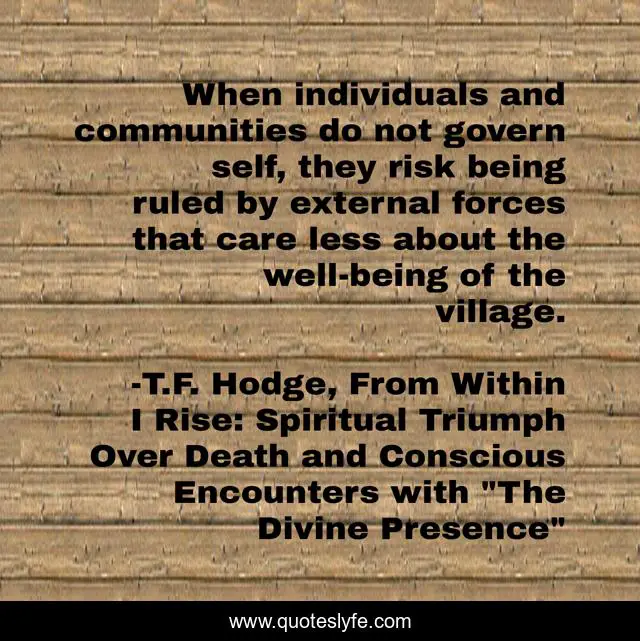 "T.F. Hodge, From Within I Rise: Spiritual Triumph Over Death and Conscious Encounters with "The Divine Presence" Quotes." Quoteslyfe.com, 2025. Fri. 05 Dec. 2025. <https://www.quoteslyfe.com/quote/When-individuals-and-communities-do-not-govern-22211>.
