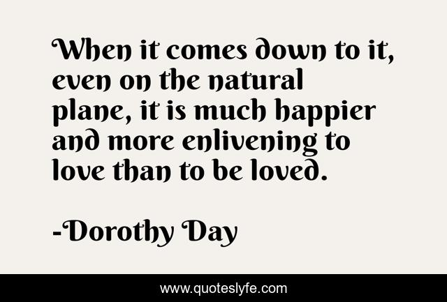 This page presents the quote "When it comes down to it, even on the natural plane, it is much happier and more enlivening to love than to be loved.". Author of this quote is Dorothy Day. This quote is about love, happiness, affection,.