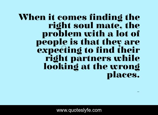This page presents the quote "When it comes finding the right soul mate, the problem with a lot of people is that they are expecting to find their right partners while looking at the wrong places.". Author of this quote is . This quote is about partners, find-your-soul-mate, edmond-mbiaka, looking-in-the-wrong-place, the-right-partner, finding-the-right-soul-mate, looking-at-the-right-places,.