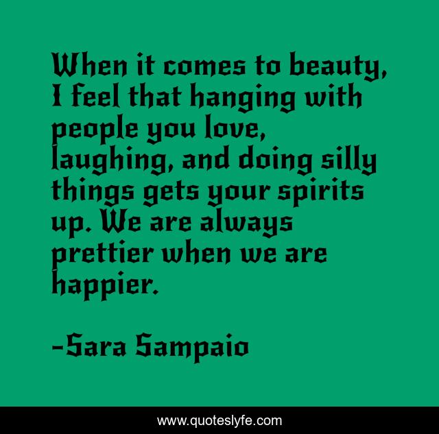 This page presents the quote "When it comes to beauty, I feel that hanging with people you love, laughing, and doing silly things gets your spirits up. We are always prettier when we are happier.". Author of this quote is Sara Sampaio. This quote is about love, silly, affection, people,.