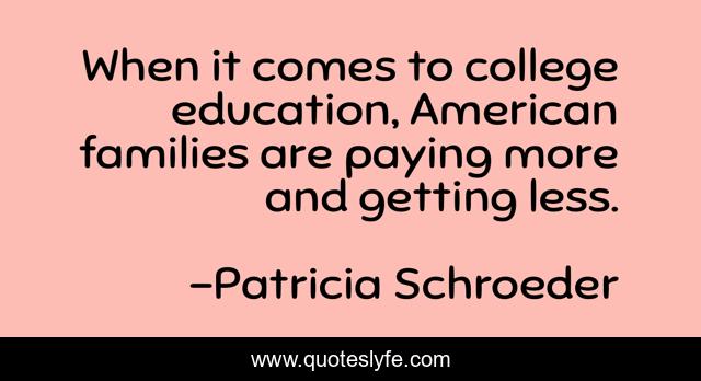This page presents the quote "When it comes to college education, American families are paying more and getting less.". Author of this quote is Patricia Schroeder. This quote is about american, college,.
