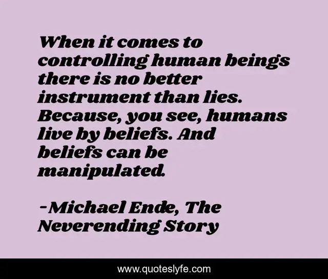 "Michael Ende, The Neverending Story Quotes." Quoteslyfe.com, 2025. Sat. 06 Dec. 2025. <https://www.quoteslyfe.com/quote/When-it-comes-to-controlling-human-beings-111470>.