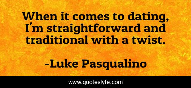 This page presents the quote "When it comes to dating, I'm straightforward and traditional with a twist.". Author of this quote is Luke Pasqualino. This quote is about traditional, twist,.