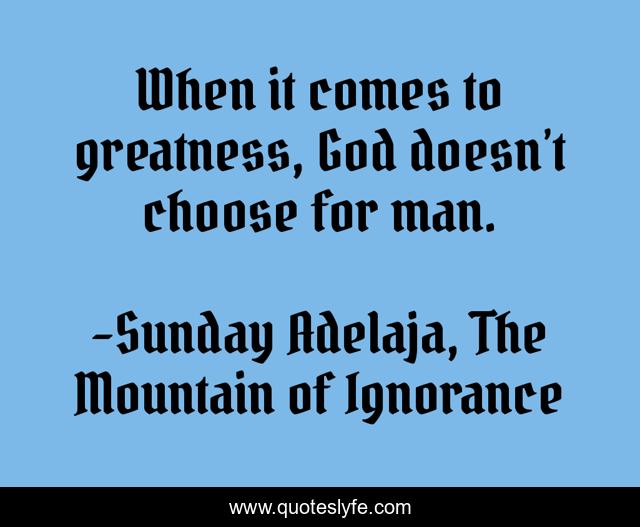 "Sunday Adelaja, The Mountain of Ignorance Quotes." Quoteslyfe.com, 2025. Sat. 06 Dec. 2025. <https://www.quoteslyfe.com/quote/When-it-comes-to-greatness-God-doesn-12166>.