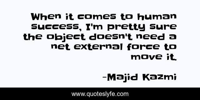 This page presents the quote "When it comes to human success, I'm pretty sure the object doesn't need a net external force to move it.". Author of this quote is Majid Kazmi. This quote is about perseverance, success-coaching, success, successful, work, motion, success-in-life, action, effort,.