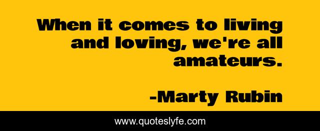 This page presents the quote "When it comes to living and loving, we're all amateurs.". Author of this quote is Marty Rubin. This quote is about living, life, love, amateurs, affection, loving,.