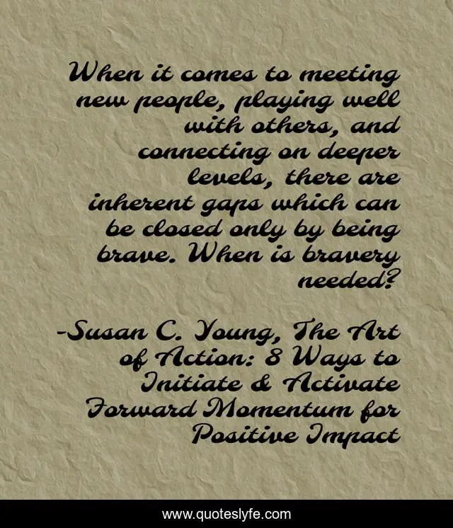 "Susan C. Young, The Art of Action: 8 Ways to Initiate & Activate Forward Momentum for Positive Impact Quotes." Quoteslyfe.com, 2025. Fri. 05 Dec. 2025. <https://www.quoteslyfe.com/quote/When-it-comes-to-meeting-new-people-233476>.