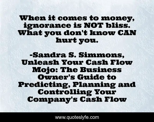 "Sandra S. Simmons, Unleash Your Cash Flow Mojo: The Business Owner's Guide to Predicting, Planning and Controlling Your Company's Cash Flow Quotes." Quoteslyfe.com, 2025. Mon. 08 Dec. 2025. <https://www.quoteslyfe.com/quote/When-it-comes-to-money-ignorance-is-128578>.