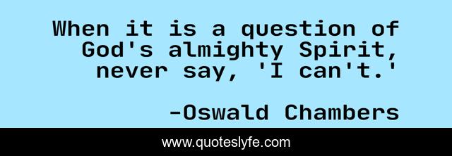 This page presents the quote "When it is a question of God's almighty Spirit, never say, 'I can't.'". Author of this quote is Oswald Chambers. .