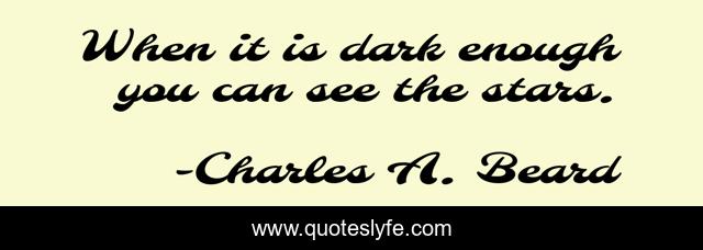 This page presents the quote "When it is dark enough you can see the stars.". Author of this quote is Charles A. Beard. .