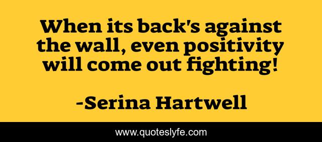This page presents the quote "When its back's against the wall, even positivity will come out fighting!". Author of this quote is Serina Hartwell. This quote is about strength, cornered, wall, positivity, second-wind, fighting, fight, winning,.