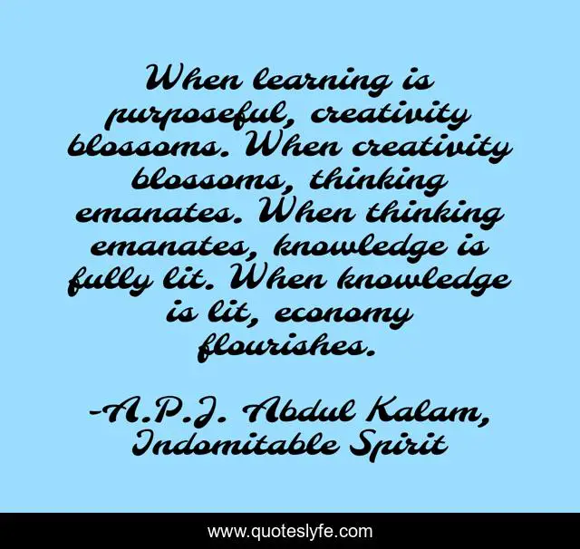 "A.P.J. Abdul Kalam, Indomitable Spirit Quotes." Quoteslyfe.com, 2025. Mon. 08 Dec. 2025. <https://www.quoteslyfe.com/quote/When-learning-is-purposeful-creativity-blossoms-When-30474>.