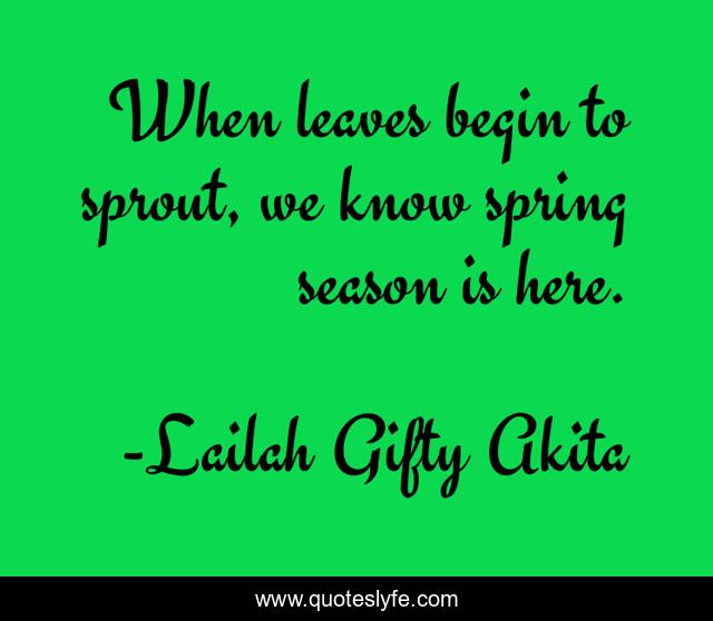 "Lailah Gifty Akita Quotes." Quoteslyfe.com, 2025. Mon. 08 Dec. 2025. <https://www.quoteslyfe.com/quote/When-leaves-begin-to-sprout-we-know-140276>.