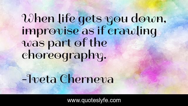 This page presents the quote "When life gets you down, improvise as if crawling was part of the choreography.". Author of this quote is Iveta Cherneva. This quote is about improvise, life, choreography, dance, down, crawling, luck,.