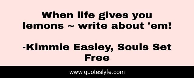 "Kimmie Easley, Souls Set Free Quotes." Quoteslyfe.com, 2025. Sun. 07 Dec. 2025. <https://www.quoteslyfe.com/quote/When-life-gives-you-lemons-write-about-174597>.