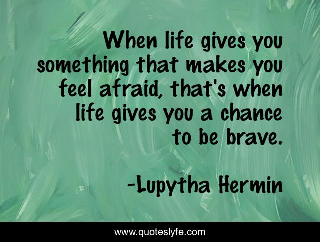 This page presents the quote "When life gives you something that makes you feel afraid, that's when life gives you a chance to be brave.". Author of this quote is Lupytha Hermin. This quote is about chance, afraid, brave, life,.
