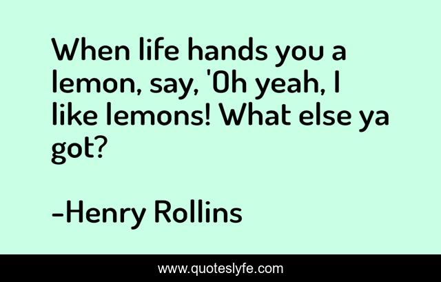 This page presents the quote "When life hands you a lemon, say, 'Oh yeah, I like lemons! What else ya got?". Author of this quote is Henry Rollins. .