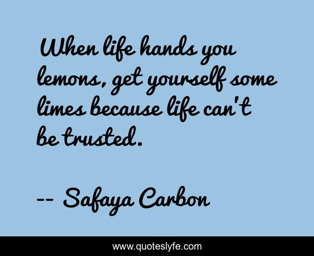 This page presents the quote "When life hands you lemons, get yourself some limes because life can't be trusted.". Author of this quote is - Safaya Carbon. This quote is about motivation, lemons,.