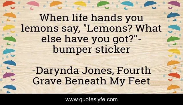 "Darynda Jones, Fourth Grave Beneath My Feet Quotes." Quoteslyfe.com, 2025. Sun. 07 Dec. 2025. <https://www.quoteslyfe.com/quote/When-life-hands-you-lemons-say-Lemons-37222>.