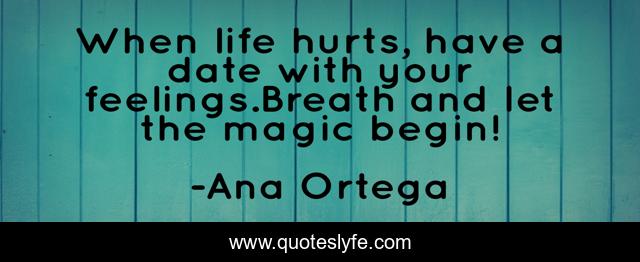 This page presents the quote "When life hurts, have a date with your feelings.Breath and let the magic begin!". Author of this quote is Ana Ortega. This quote is about conciousness, life-challenges, awareness, dating-tips,.