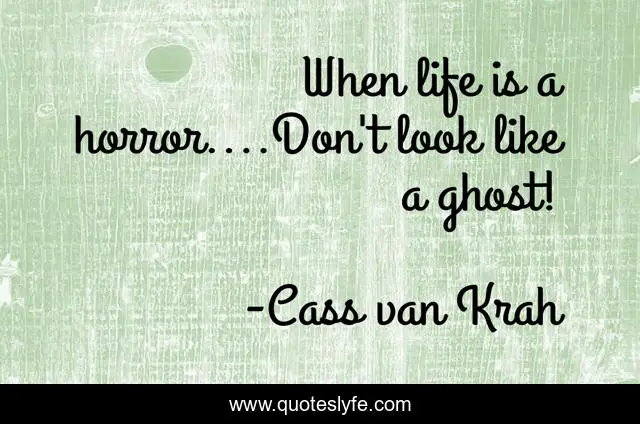 This page presents the quote "When life is a horror....Don't look like a ghost!". Author of this quote is Cass van Krah. This quote is about ghost, life, love, horror, love-yourself, life-lessons, pride, nightmare, affection,.