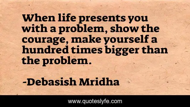 This page presents the quote "When life presents you with a problem, show the courage, make yourself a hundred times bigger than the problem.". Author of this quote is Debasish Mridha. This quote is about life, love, knowledge, inspirational, intelligence, philosophy, wisdom, quotes, affection,.