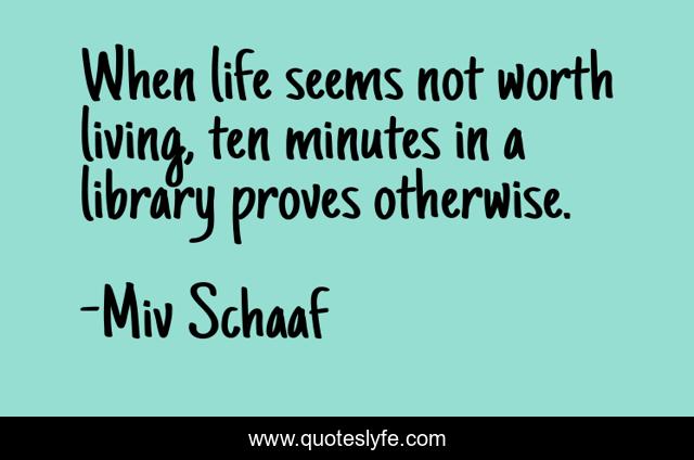 This page presents the quote "When life seems not worth living, ten minutes in a library proves otherwise.". Author of this quote is Miv Schaaf. This quote is about libraries, life,.