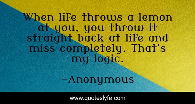 This page presents the quote "When life throws a lemon at you, you throw it straight back at life and miss completely. That's my logic.". Author of this quote is Anonymous. This quote is about advice, life, lemons, logic,.