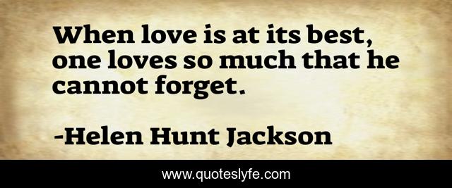 This page presents the quote "When love is at its best, one loves so much that he cannot forget.". Author of this quote is Helen Hunt Jackson. This quote is about forget, best, love is,.