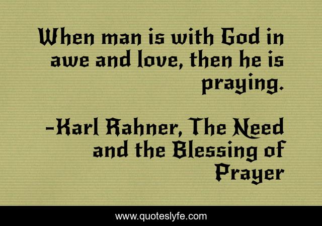 This page presents the quote "When man is with God in awe and love, then he is praying.". Author of this quote is Karl Rahner, The Need and the Blessing of Prayer. This quote is about god, christianity, religion, inspirational, prayer, enthusiasm, theology, catholicism,.
