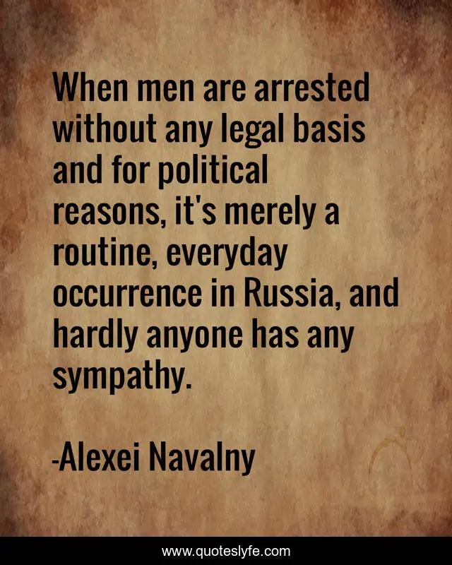 This page presents the quote "When men are arrested without any legal basis and for political reasons, it's merely a routine, everyday occurrence in Russia, and hardly anyone has any sympathy.". Author of this quote is Alexei Navalny. This quote is about men, political, legal,.