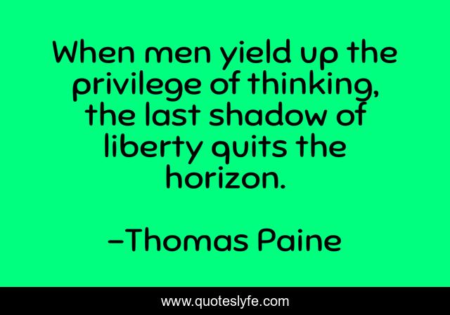 This page presents the quote "When men yield up the privilege of thinking, the last shadow of liberty quits the horizon.". Author of this quote is Thomas Paine. This quote is about thinking, shadow, liberty,.