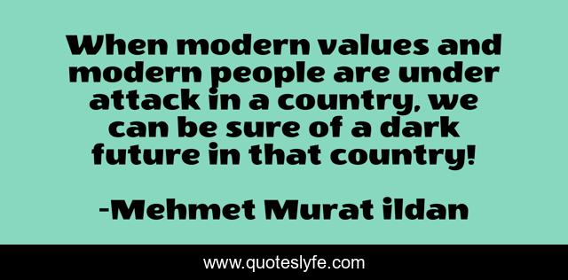 This page presents the quote "When modern values and modern people are under attack in a country, we can be sure of a dark future in that country!". Author of this quote is Mehmet Murat ildan. This quote is about modern-people, ildan-words, mehmet-murat-ildan, ildan-wise-sayings, turkish, attacks, turkish-playwrights, under-attack, turkish-wisdom-words,.