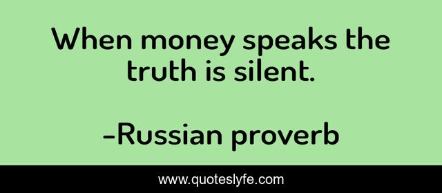This page presents the quote "When money speaks the truth is silent.". Author of this quote is Russian proverb. .
