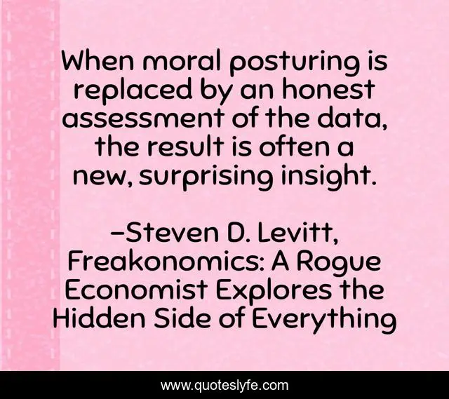 "Steven D. Levitt, Freakonomics: A Rogue Economist Explores the Hidden Side of Everything Quotes." Quoteslyfe.com, 2025. Sat. 06 Dec. 2025. <https://www.quoteslyfe.com/quote/When-moral-posturing-is-replaced-by-an-256640>.