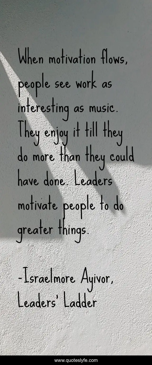 "Israelmore Ayivor, Leaders' Ladder Quotes." Quoteslyfe.com, 2025. Mon. 08 Dec. 2025. <https://www.quoteslyfe.com/quote/When-motivation-flows-people-see-work-as-48264>.