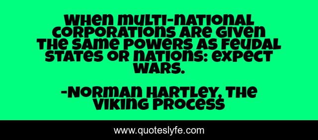 This page presents the quote "When multi-national corporations are given the same powers as feudal states or nations: expect wars.". Author of this quote is Norman Hartley, The Viking Process. This quote is about terrorism, capitalism, technology, modernism,.