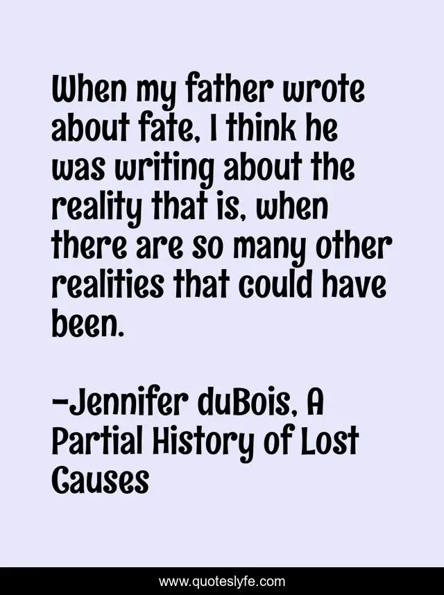 "Jennifer duBois, A Partial History of Lost Causes Quotes." Quoteslyfe.com, 2025. Sun. 07 Dec. 2025. <https://www.quoteslyfe.com/quote/When-my-father-wrote-about-fate-I-94063>.