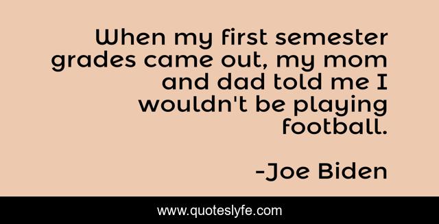 This page presents the quote "When my first semester grades came out, my mom and dad told me I wouldn't be playing football.". Author of this quote is Joe Biden. This quote is about me, grades, football,.
