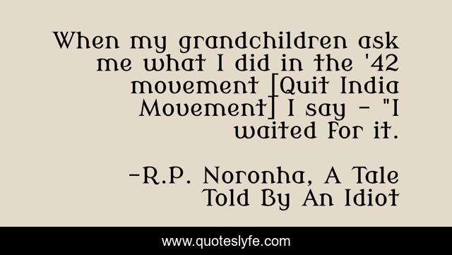 This page presents the quote "When my grandchildren ask me what I did in the '42 movement [Quit India Movement] I say - "I waited for it.". Author of this quote is R.P. Noronha, A Tale Told By An Idiot. This quote is about india, indian-history, history,.