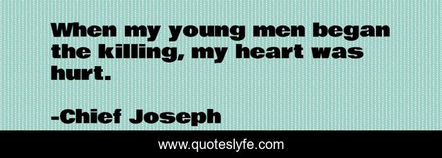 This page presents the quote "When my young men began the killing, my heart was hurt.". Author of this quote is Chief Joseph. This quote is about heart, young, hurt,.