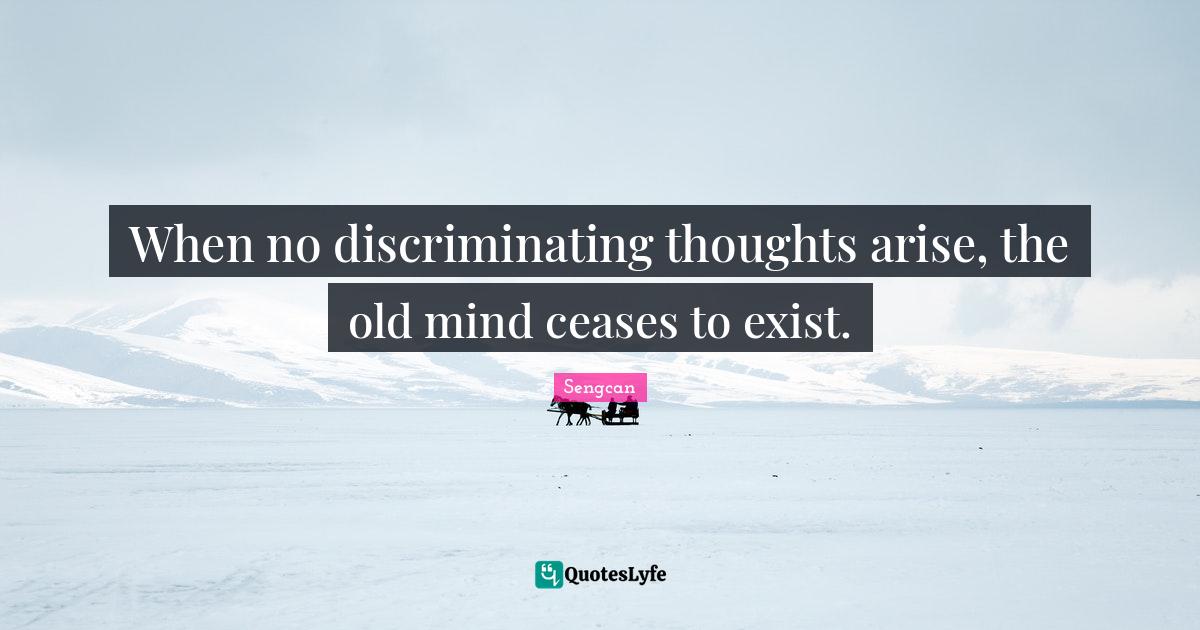 This page presents the quote "When no discriminating thoughts arise, the old mind ceases to exist.". Author of this quote is Sengcan. This quote is about arise, mind, cease,.