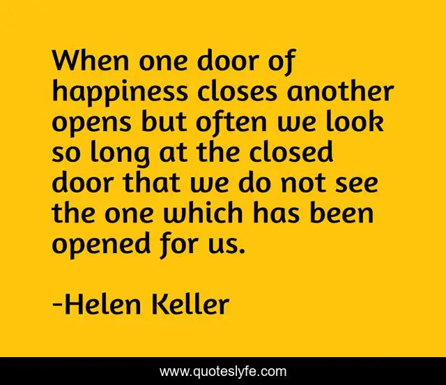 "Helen Keller Quotes." Quoteslyfe.com, 2025. Sat. 06 Dec. 2025. <https://www.quoteslyfe.com/quote/When-one-door-of-happiness-closes-another-262698>.