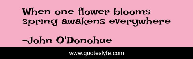 This page presents the quote "When one flower blooms spring awakens everywhere". Author of this quote is John O'Donohue. This quote is about enthusiasm, inspirational,.