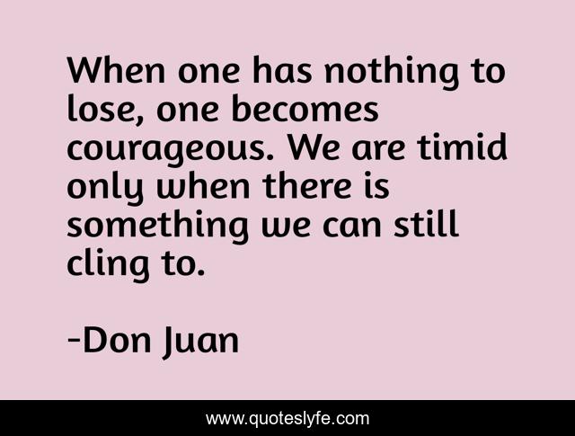 This page presents the quote "When one has nothing to lose, one becomes courageous. We are timid only when there is something we can still cling to.". Author of this quote is Don Juan. This quote is about possession, warrior, courage,.