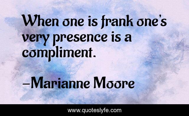 This page presents the quote "When one is frank one's very presence is a compliment.". Author of this quote is Marianne Moore. This quote is about helping, people,.