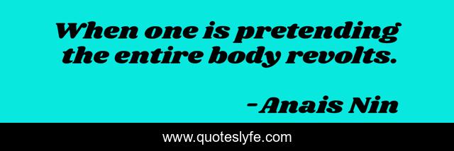 This page presents the quote "When one is pretending the entire body revolts.". Author of this quote is Anais Nin. This quote is about self, acceptance,.