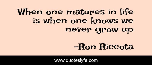 This page presents the quote "When one matures in life is when one knows we never grow up". Author of this quote is Ron Riccota. .