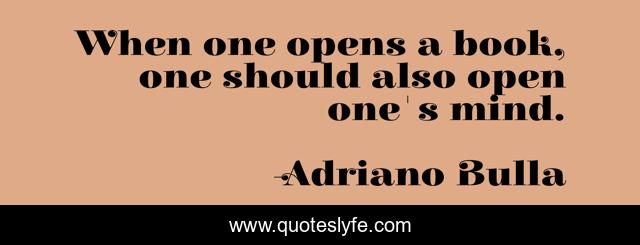 This page presents the quote "When one opens a book, one should also open one's mind.". Author of this quote is Adriano Bulla. This quote is about open-mindedness, reading-books, books, reading,.